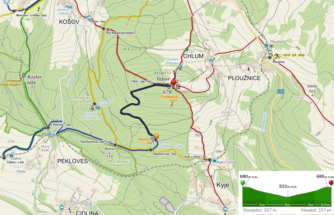 Doma, při listování knihou „Rozhledny a ztracené hrady“, kterou jsem dostal k vánocům, jsem narazil na Allainovu věž, jenž by měla být asi 2km od rozhledny Tábor, tady kousek za Lomnicí nad Popelkou. Pojedeme tam, na hodinovou procházku.