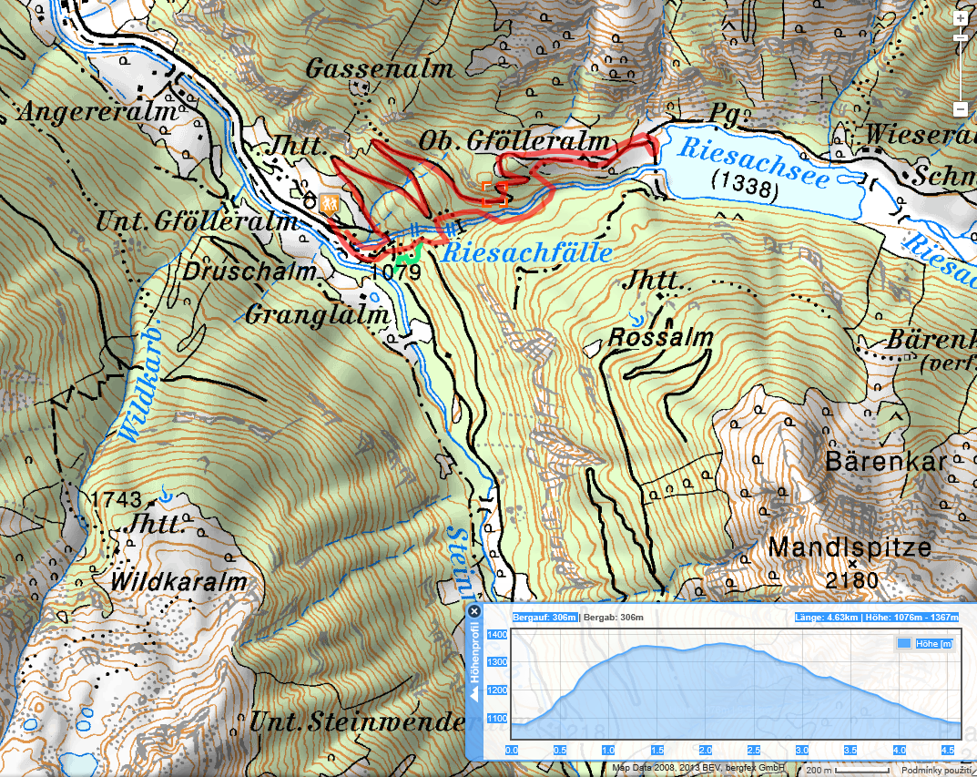 nahoru k Riesachsee to ukazuje hodinu, tak nám s focením a kocháním, počítám, dá tak dvě