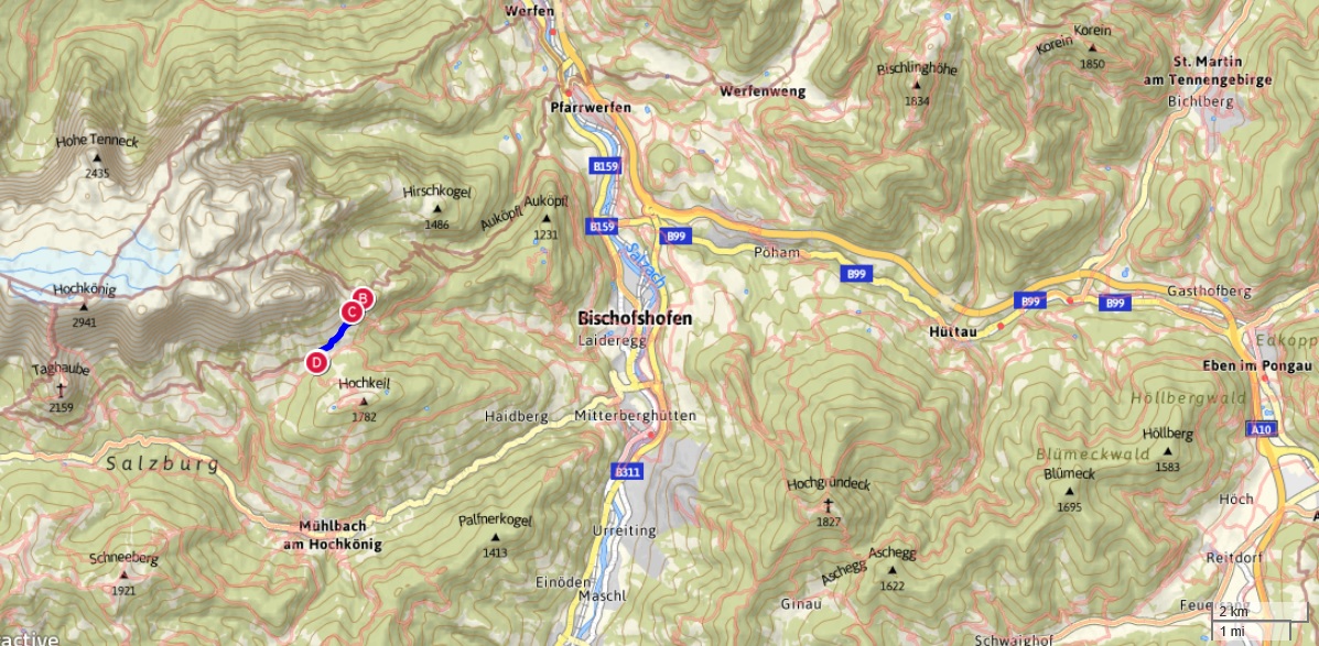 Ještě den předem se ptám Tondy, který tam často jako řidič jezdí se zájezdy, na nějaký dobrý tip, kde bychom se mohli po cestě zastavit. Chceme vyjet brzo ráno, ale ubytko je až po 16. hodině, tak něco pěkného, ale ne moc vyčerpávajícího. Dostávám tip, odbočit za Salcburkem v Bischofhofen na Mühlbach am Hochkönig a z něj vystoupat po neplacené horské silnici až do nějakých 1500m/m k chatě Arthurhaus a že po vrstevnici se dá jít pěknou procházkou s výhledy.