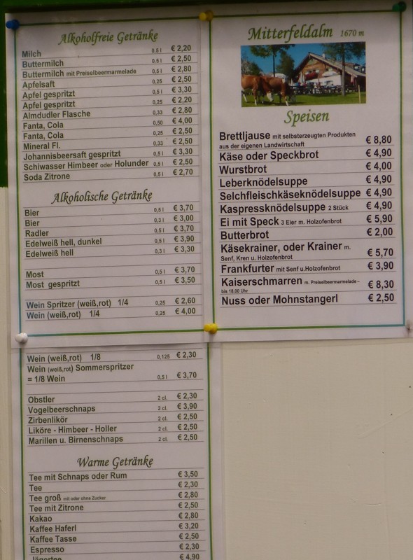 popojdeme ještě kousek a už na nás vykukuje místní chalupa na Mitterfeldalm (1670m), náš dnešní cíl