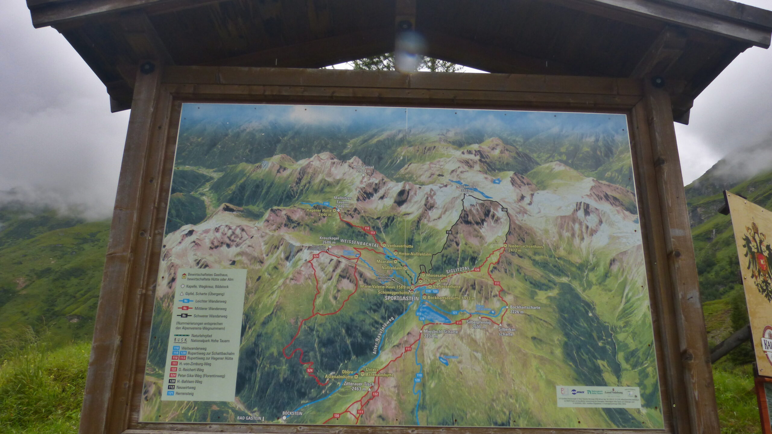 Nakonec i přes nepřízeň počasí jsme Sportgastein trochu prozkoumali, největší slejvák po ránu jsme naštěstí přečkali v autě. Kopec nám promlholil, ale procházka údolím už byla v pohodě. Škoda, že nevyzbyde čas na Kreuzkogel, který máme furt na očích. Snad příště. A pro příště již vím i kudy na Schareck a ostatní třítisícovky tady, tak možná jednou…