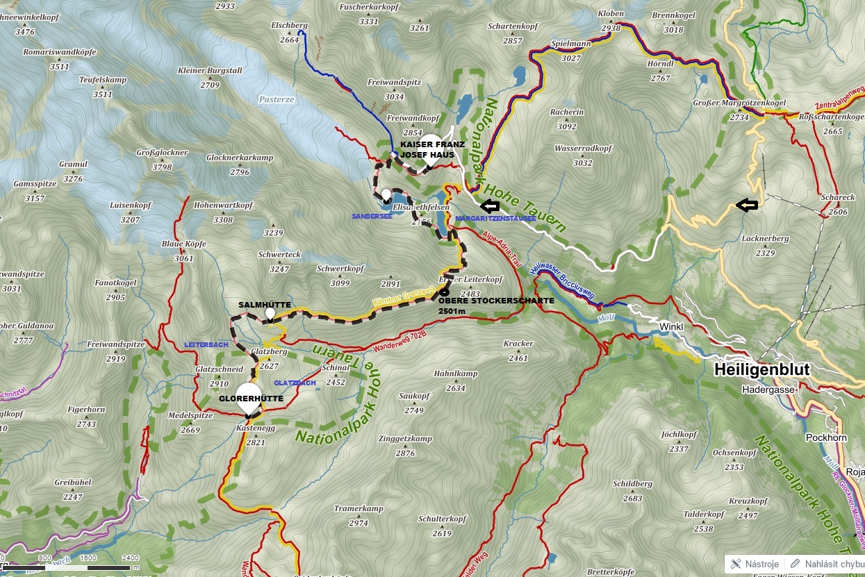15:06 – je to křižovatka pro výstup na Großglockneer např. po černé přes chatu Erzherzog-Johann-Hütte (chata podle ukazatele 3 1/2hod) nebo dále po červené na Stüdlhütte (3h)
