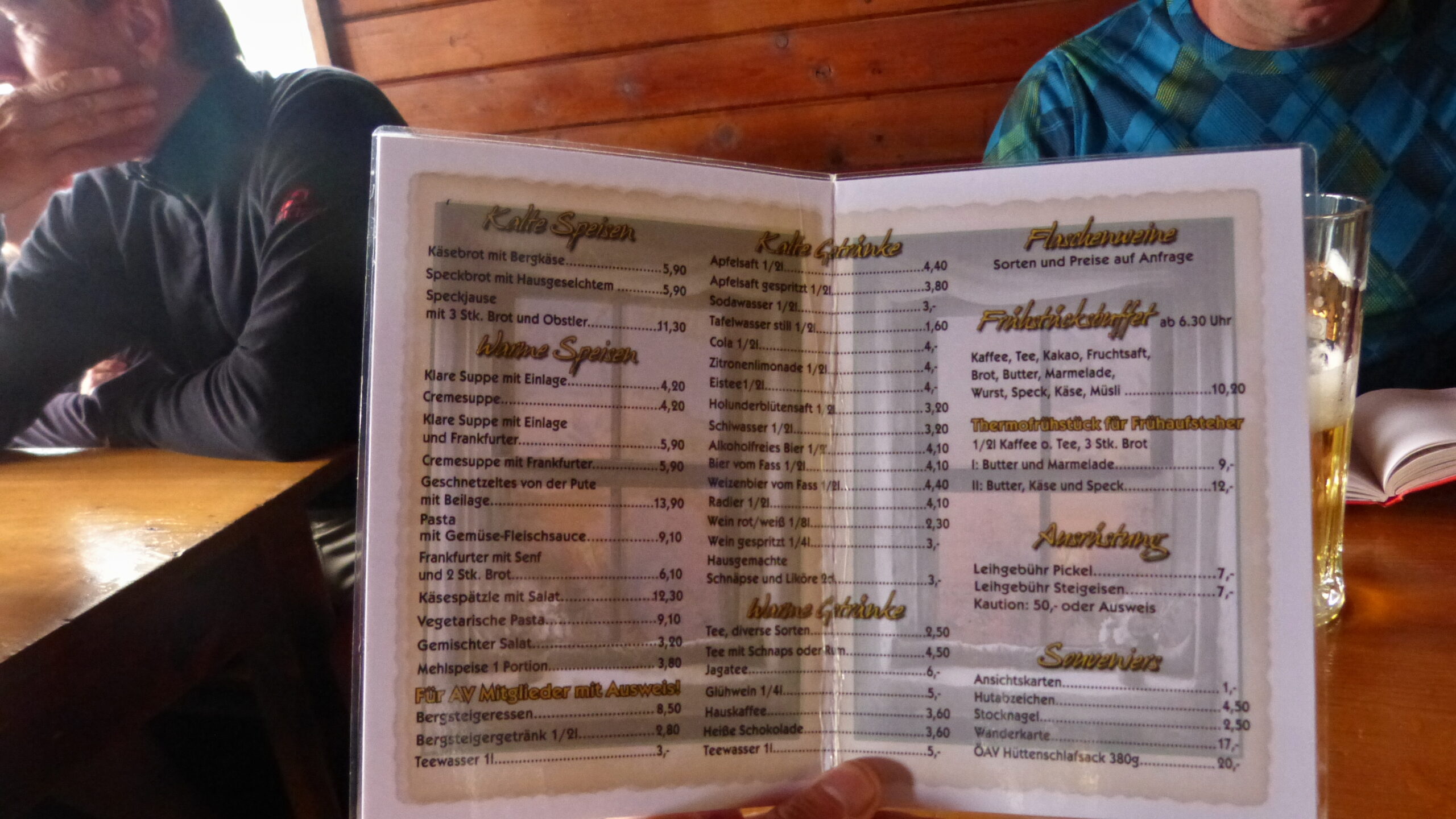 jak je v jídeláku vidět, je zde možno zapůjčit i cepín a mačky pro výstup na Großglockner;