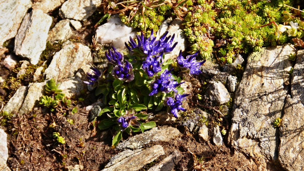 vracíme se zpátky do sedla a stáčíme se na východ k bivaku, jako z jiného světa široko daleko roste tu jedna skalnička