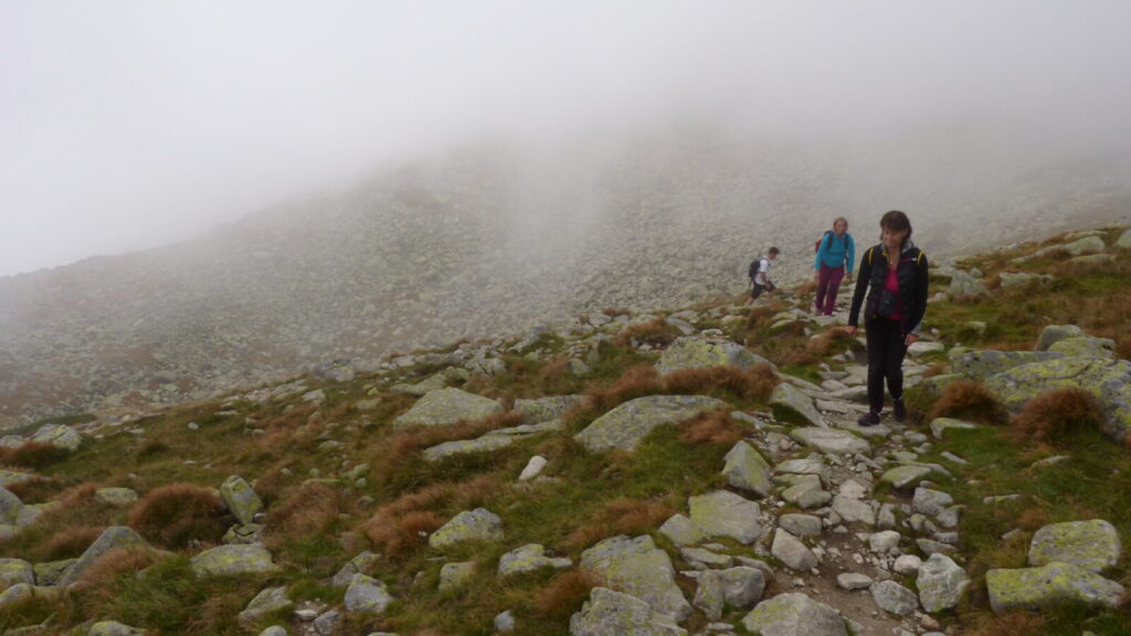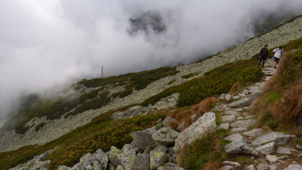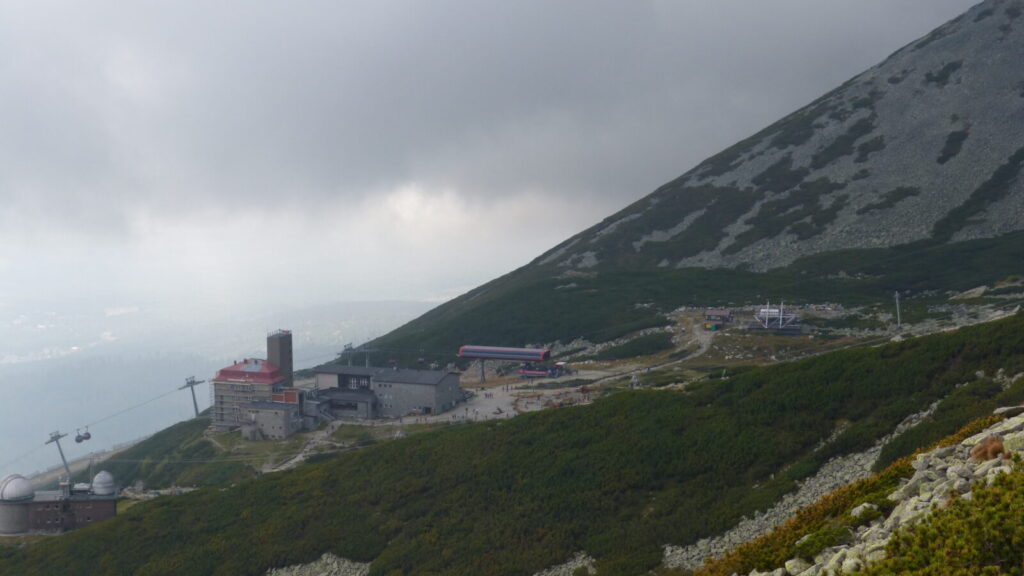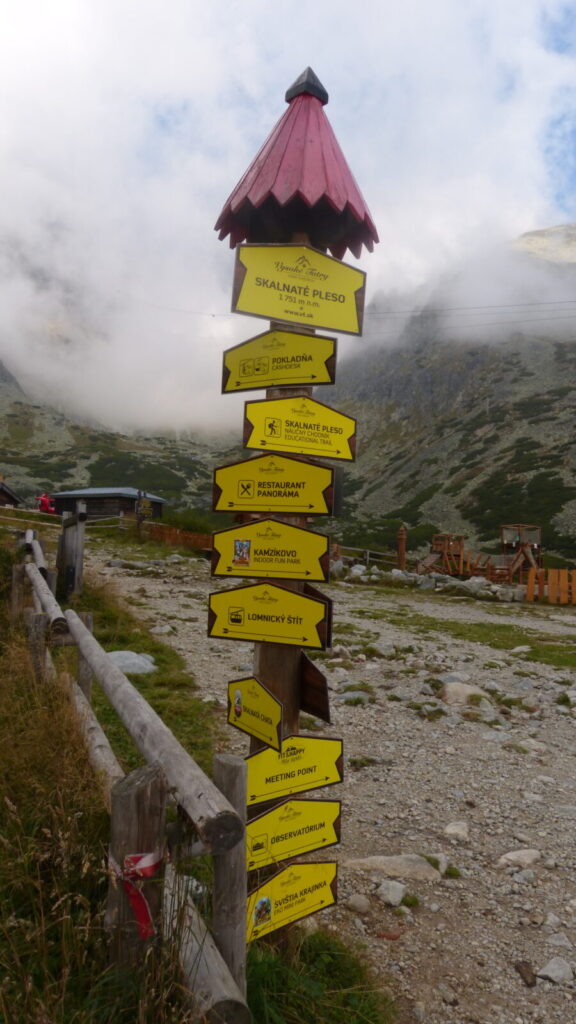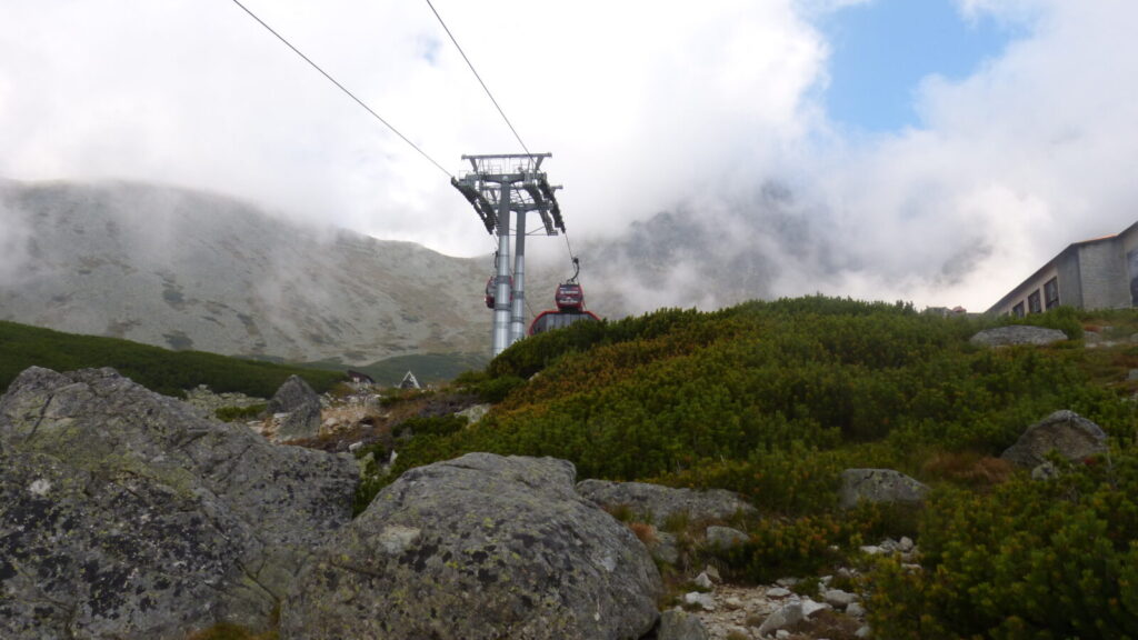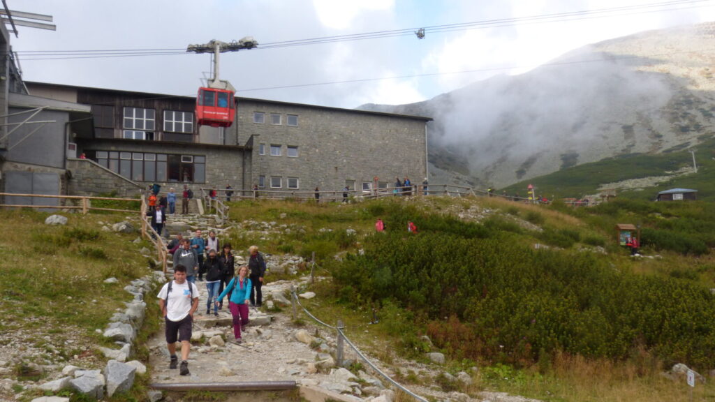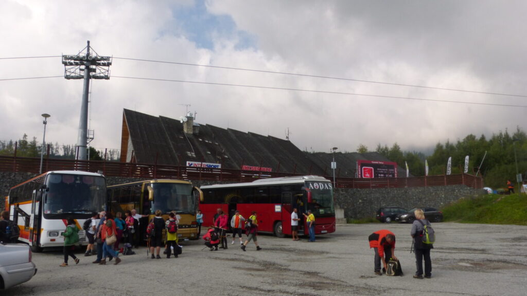 Ráno po půl desáté vysedáme z autobusu v Tatranské Lomnici, převlékáme se do turistického a vyrážíme na lanovku. Dostali jsme itinerář se třemi možnými trasami, vybíráme tu nejdelší. Ze Skalnatého plesa přes Velkou Svišťovku k Chatě pri Zelenom plese a Dolinou Kežmarskej Bielej vody zpeť.