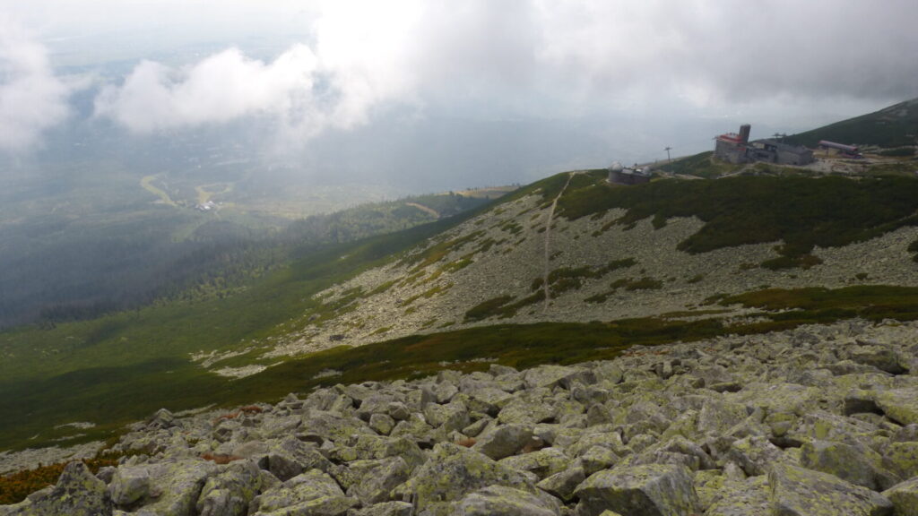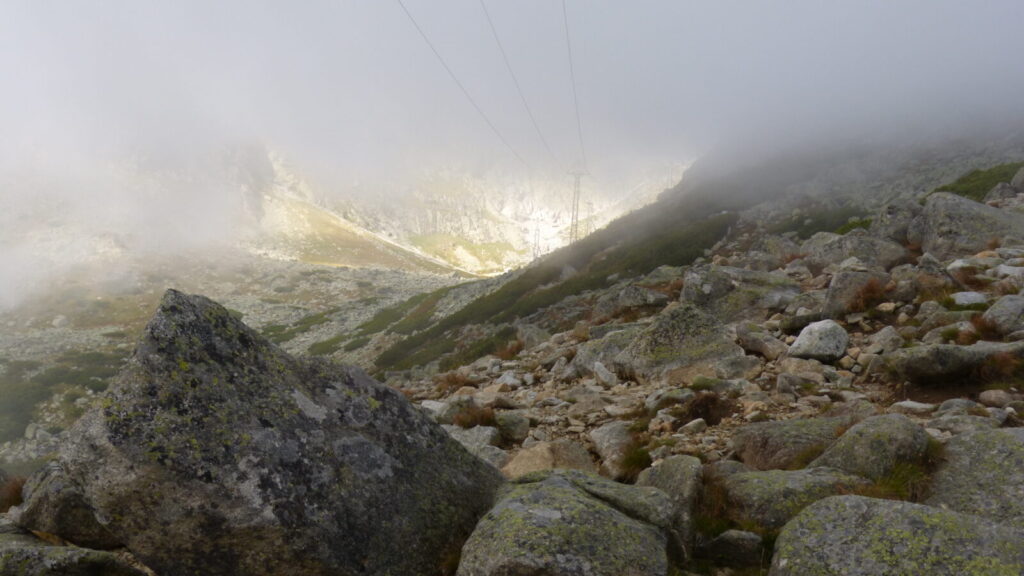 Po jedenácté hodině se vydáváme na další cestu, podcházíme lanovku na Lomničák a od nyní to bude dlouho jen přírodou, po kamení a do kopce