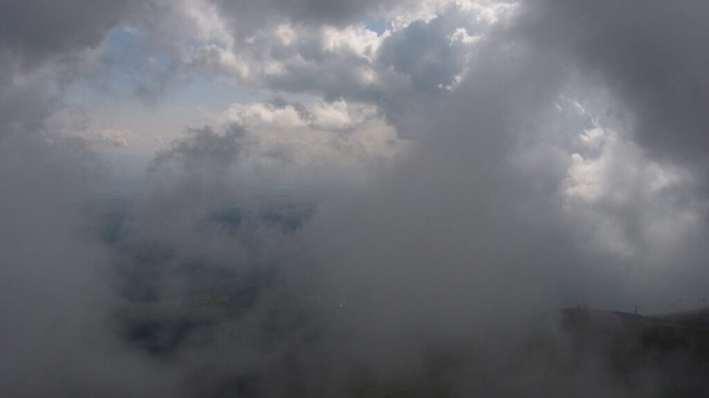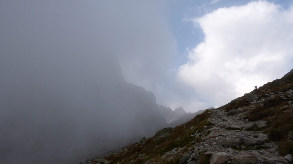 Kolem nás se stále převalují mraky, chvíli jsme obklopeni mlhou, chvíli svítí sluníčko, no, pršet snad nebude