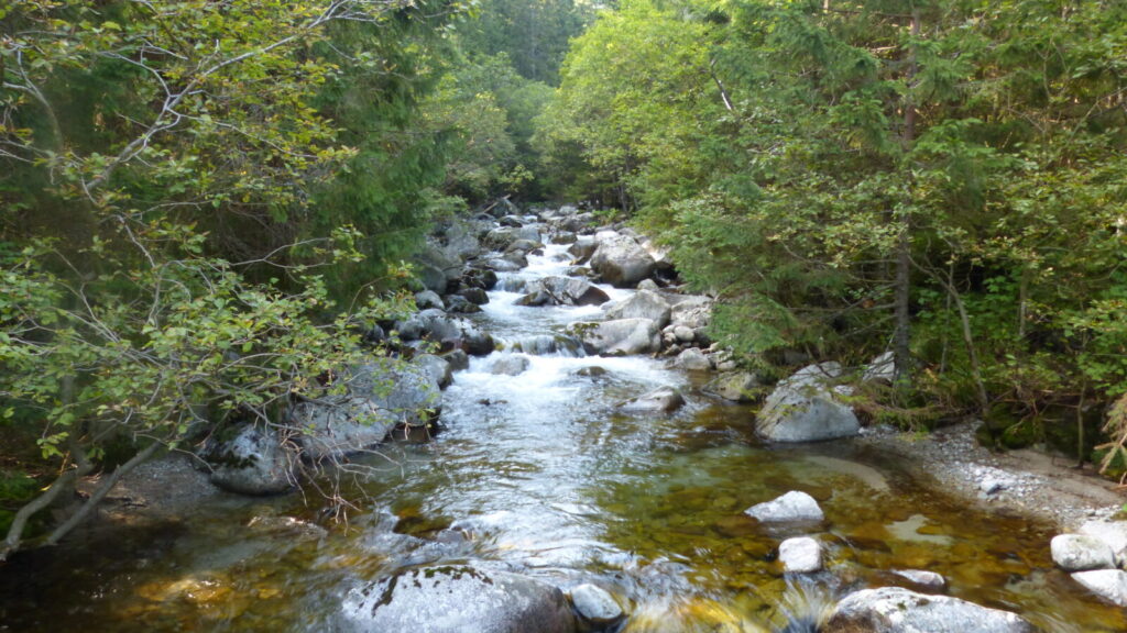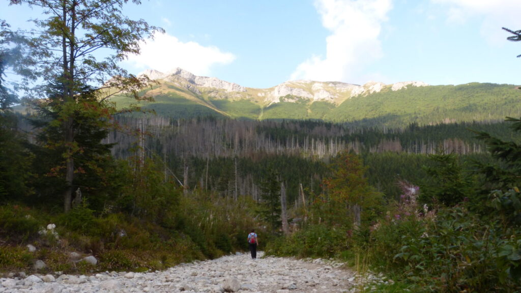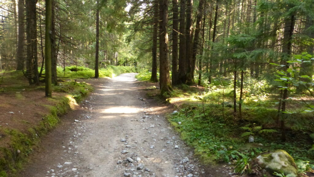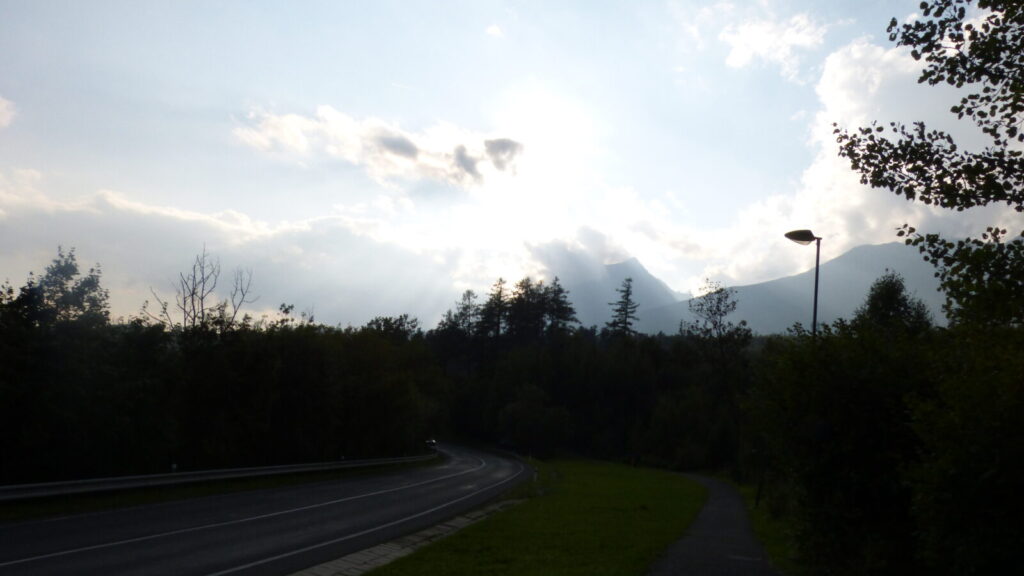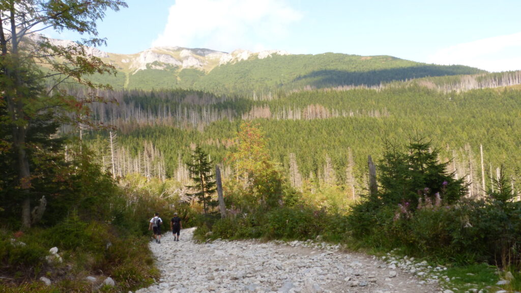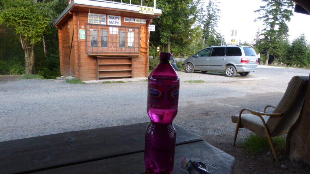 Cesta údolím je prý nekonečná, mne to po slivce ani nepřijde, na ostatní nezbyla, no nechali mne tam moc dlouho samotného čekat. Přesto za necelou hodku a půl jsme u silnice na Tatranskou Lomnici, je tu zastávka busu, ale zrovna nic nejede, po asfaltu se nám pěšky totiž nijak moc nechce. Navíc nám došly tekutiny, ale spoléháme se , že snad podél silnice bude otevřená nějaká osvěžovna, ale ne, za celou hodinu co dupeme po asfaltu jsme nic otevřeného nepotkali.