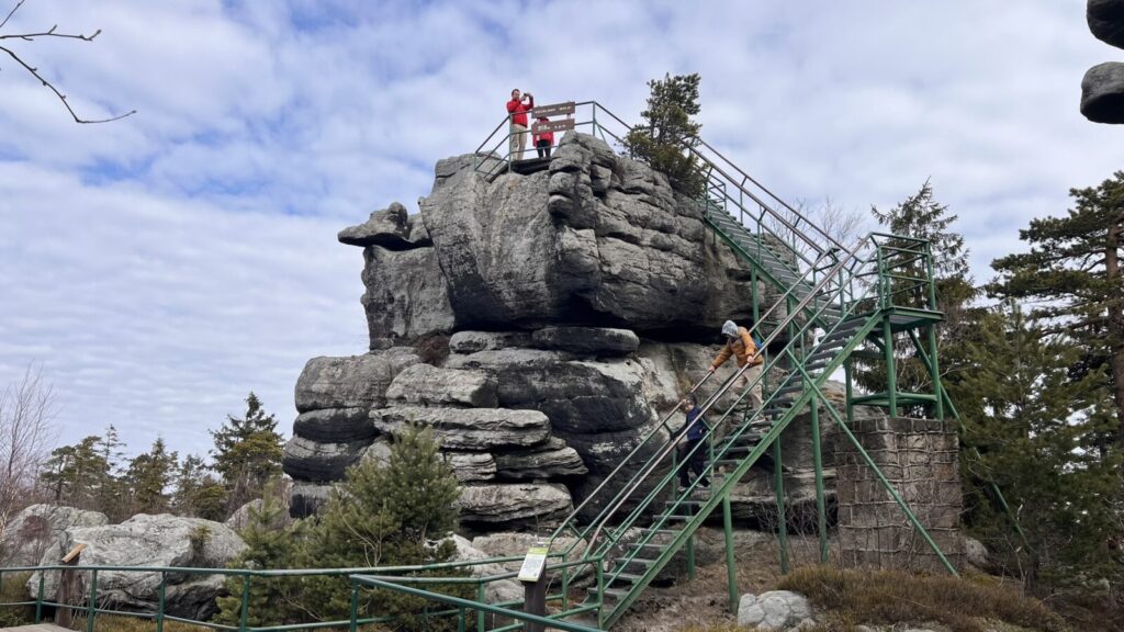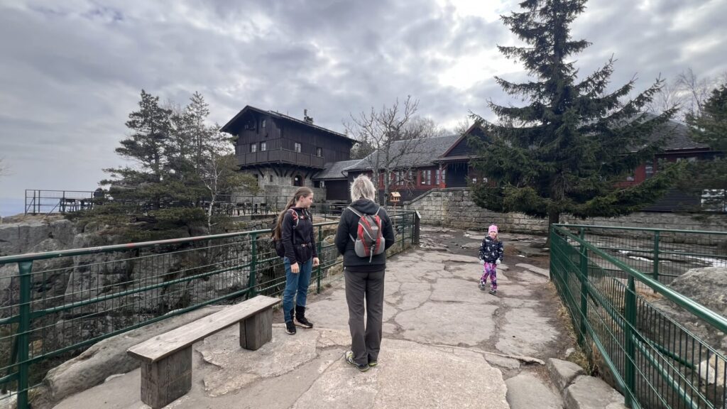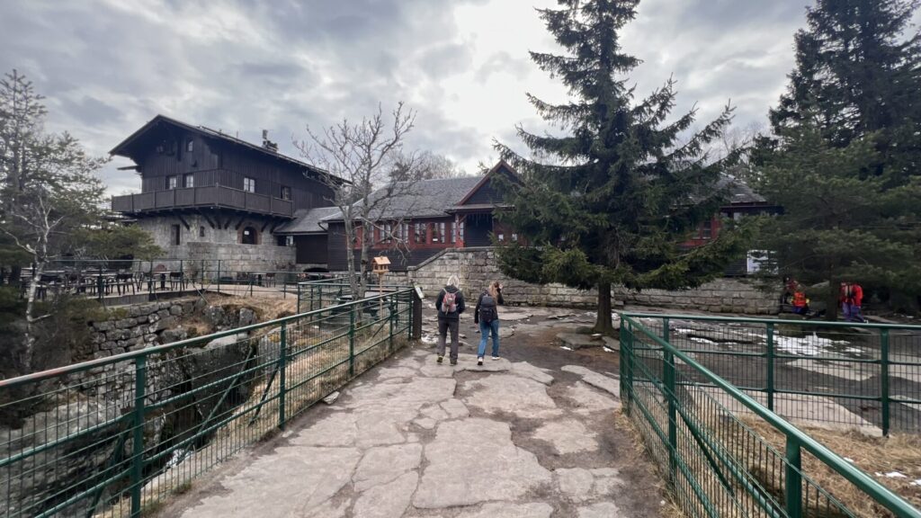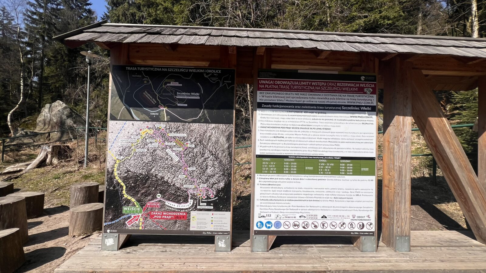 Z vyhřáté chalupy pokračujeme na nejvyšší vrcholek s vyhlídkou Szczeliniec Wielki 922m. V sezoně je zde pokladna vybírá se vstupné na vyhlídkový okruh.