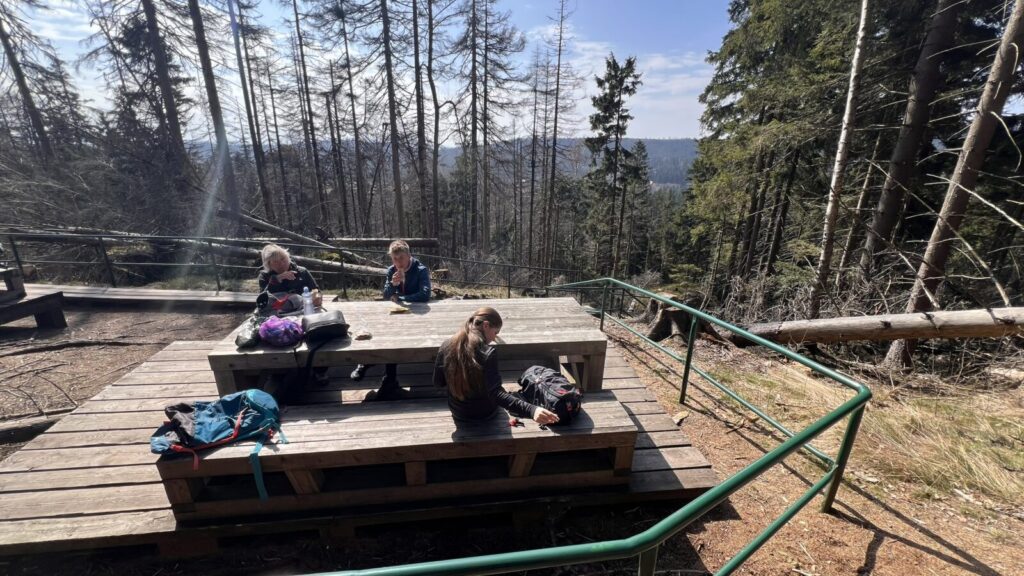 Na rozcestníku vidím kopec, na který jsem koukal před chvílí do mapy – Narożnik 849m a jen deset minut daleko. Tak se dáváme ještě na poslední procházku. A vyplatilo se. Je to tu téměř liduprázdně a není to tu samé zábradlí a zábrany, takové volnější pohodovější, na hřebínku strávíme skoro hodinu.