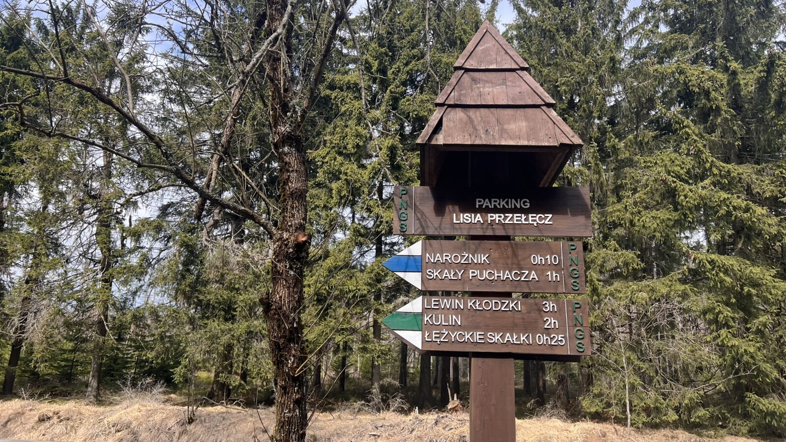 Po cestě však nedaleko od Karlova narážíme na malé lesní neplacené parkoviště (Lisia Przełęcz), říkám si, když už jsme sem jeli dvě hodiny, dojdeme se alespoň podívat, co tady je kde za atrakci.