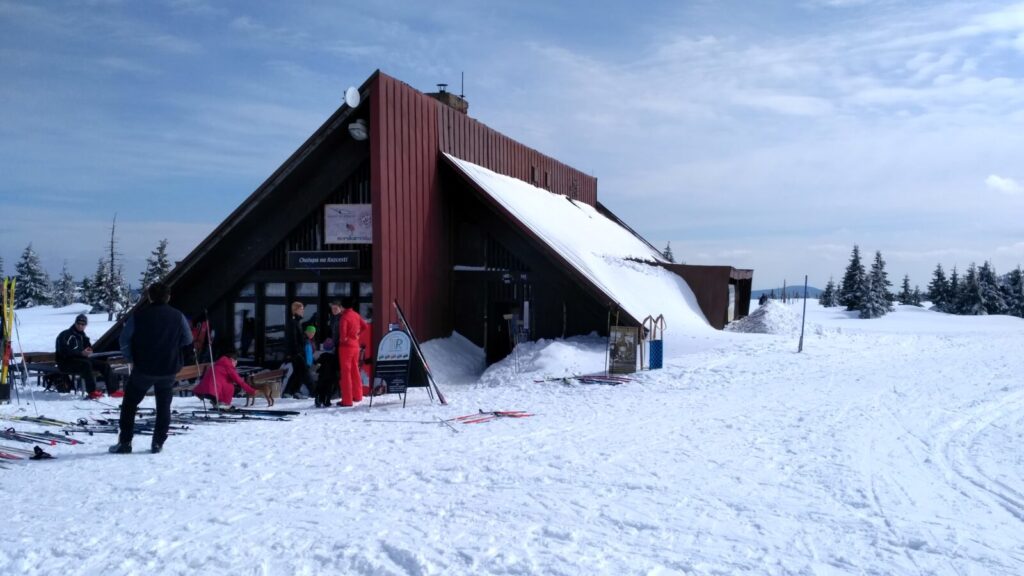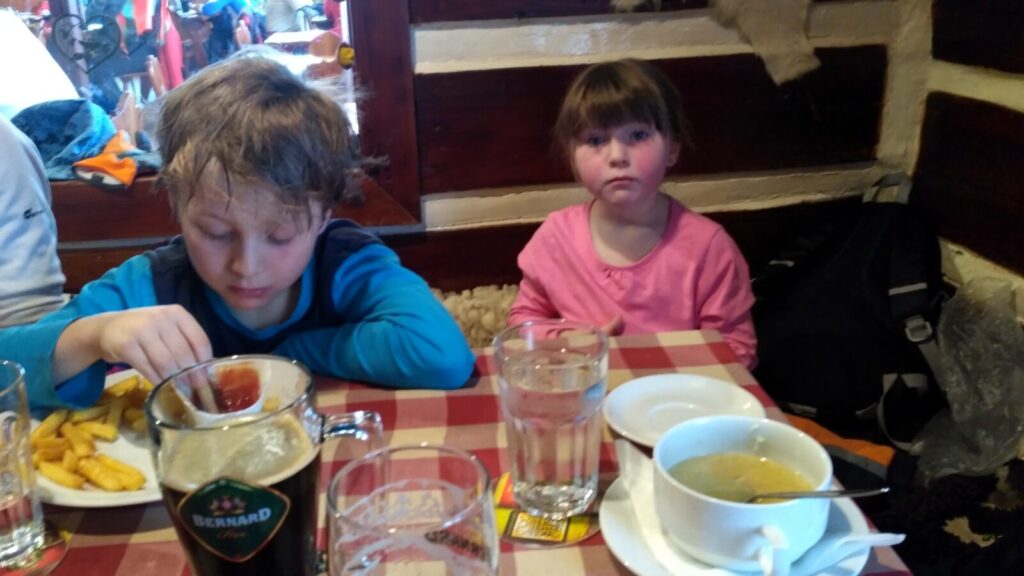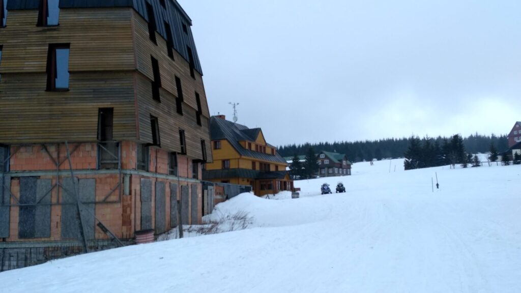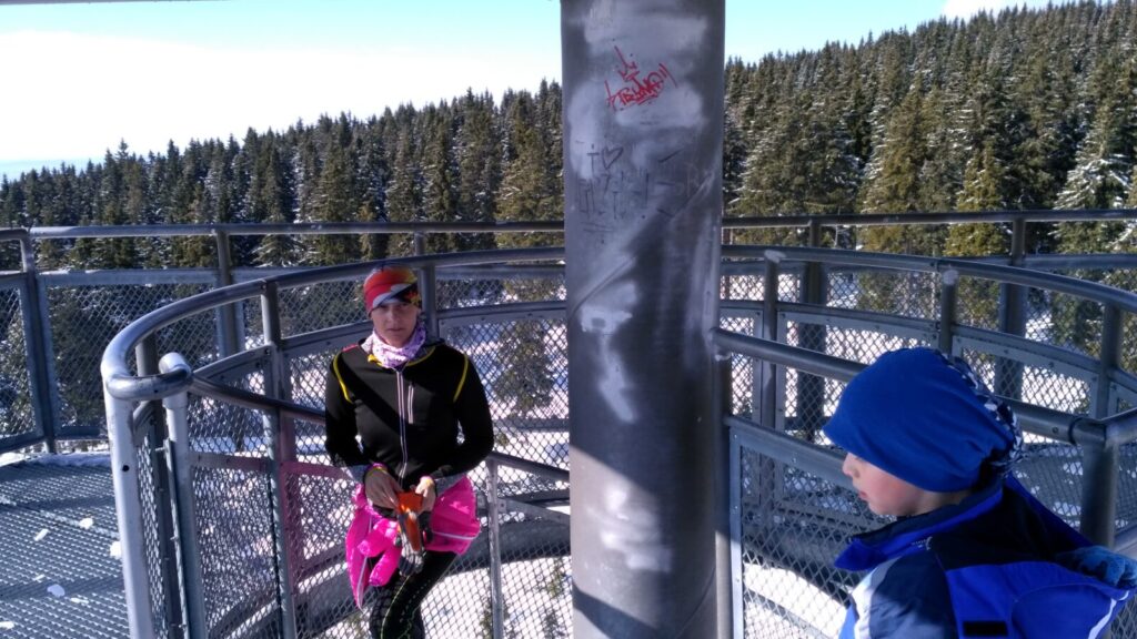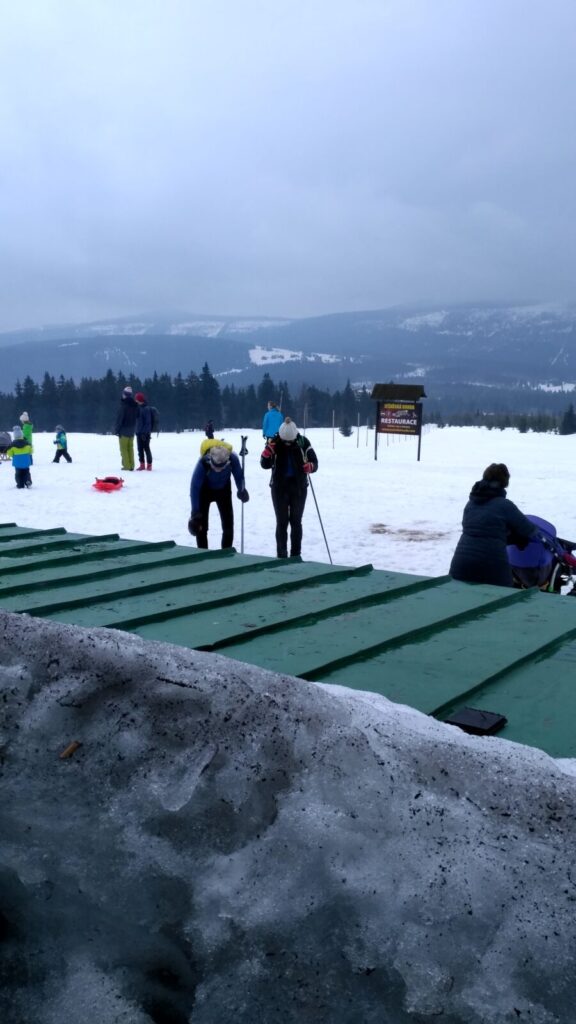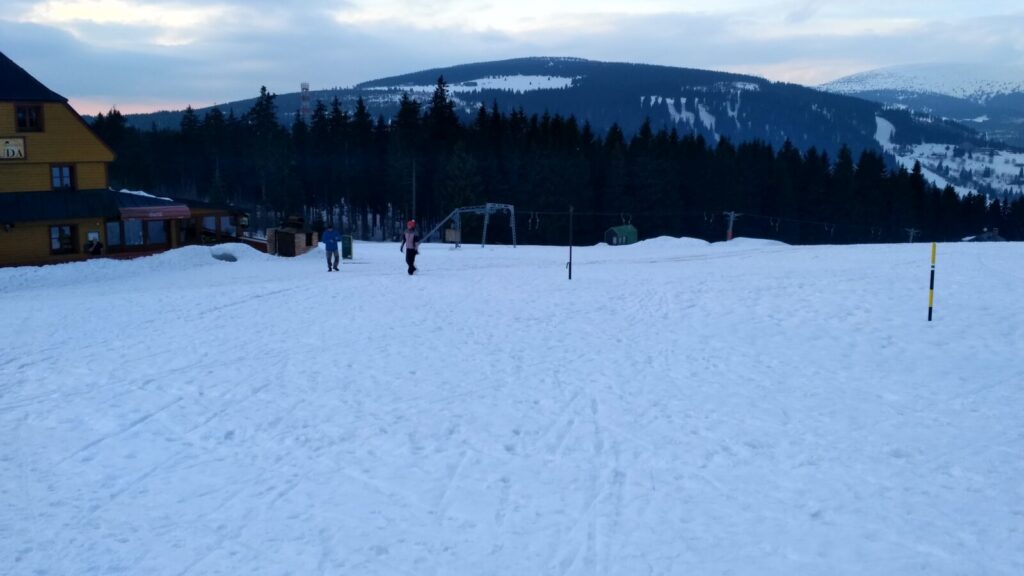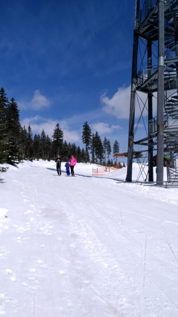 Docházíme na Bachledku, takové klasické komerční středisko na konci lanovky z Bachledovy Doliny. Právě tady tu budují rozhlednu, tedy procházku korunami stromů, jejíž stavba je nyní velice rozšířená. V místní restauraci Panorama su kupujeme pivko, bohužel jen pleškové a holky k tomu langoše.