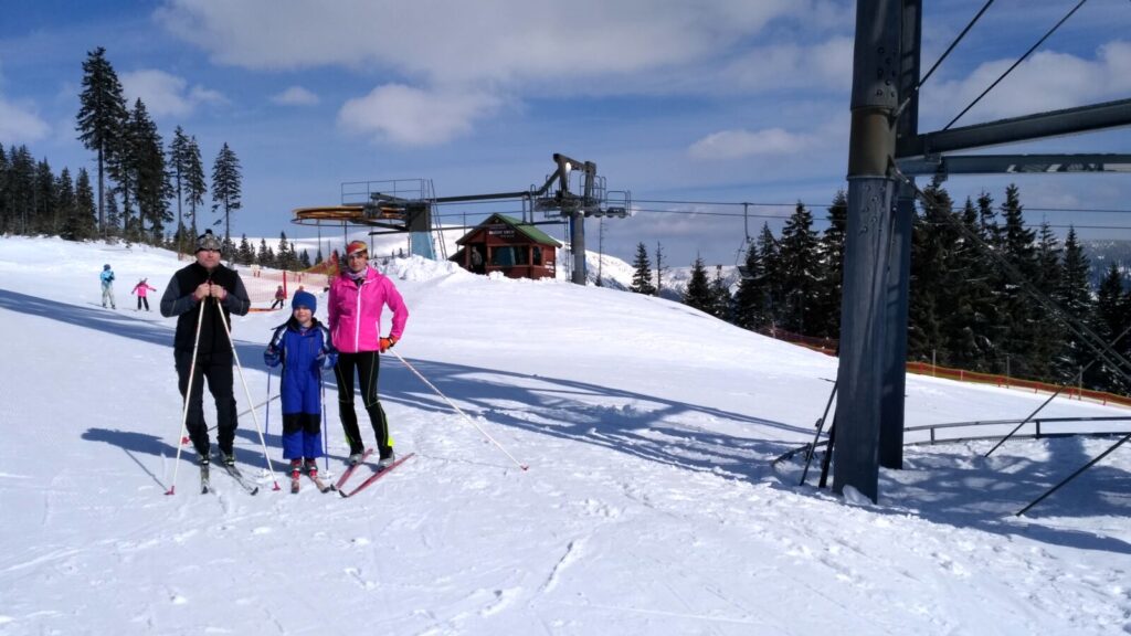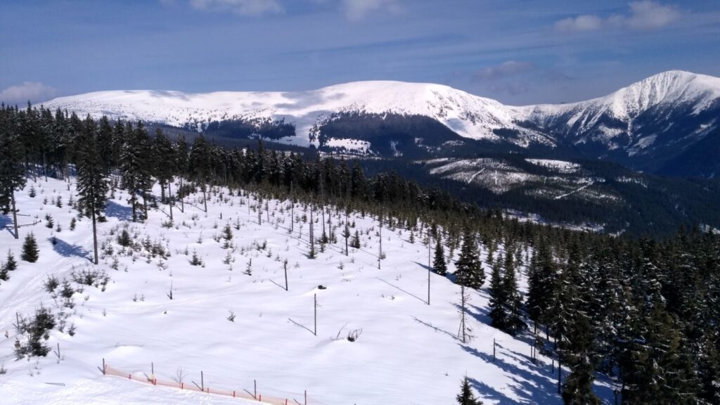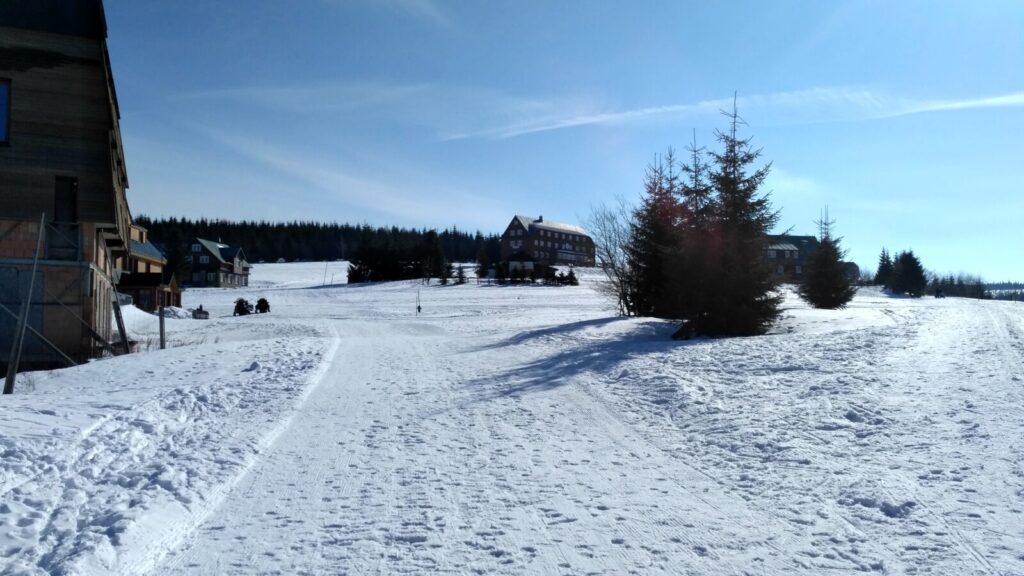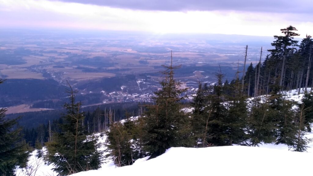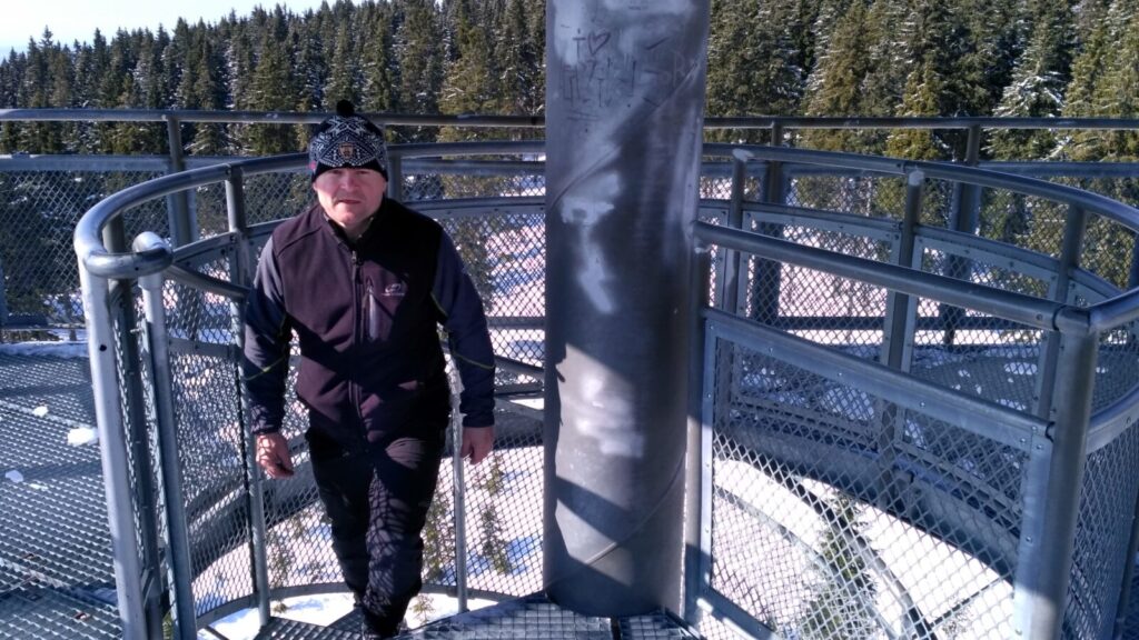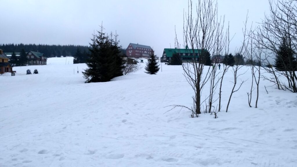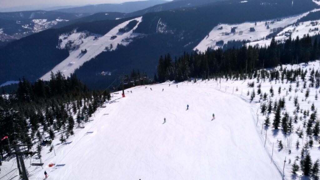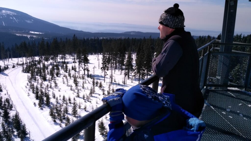 Docházíme na Bachledku, takové klasické komerční středisko na konci lanovky z Bachledovy Doliny. Právě tady tu budují rozhlednu, tedy procházku korunami stromů, jejíž stavba je nyní velice rozšířená. V místní restauraci Panorama su kupujeme pivko, bohužel jen pleškové a holky k tomu langoše.