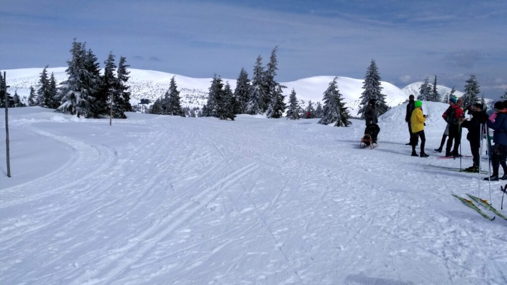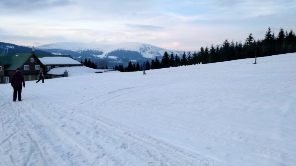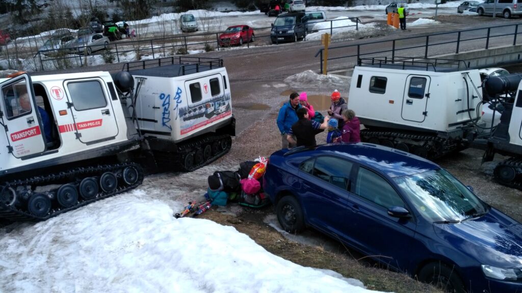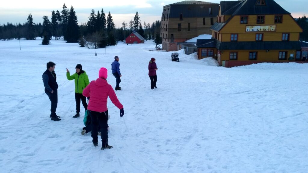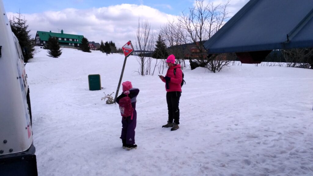 Posedíme, pocouráme po vršku asi hodinku a dáváme se cestou pod lanovkou dolů. Tam by na nás měl čekat autobus a vzít nás zpět domů. Čekáme zde přes hodinu, silnice sem jsou ucpané a autobus se sem nemůže dostat, jdeme mu naproti a nakonec na sebe natrefíme.