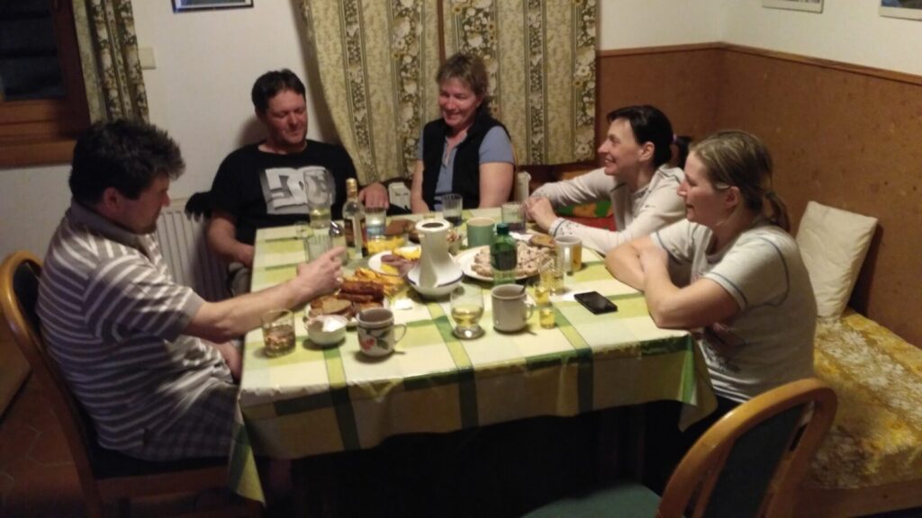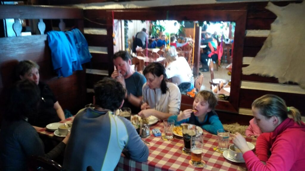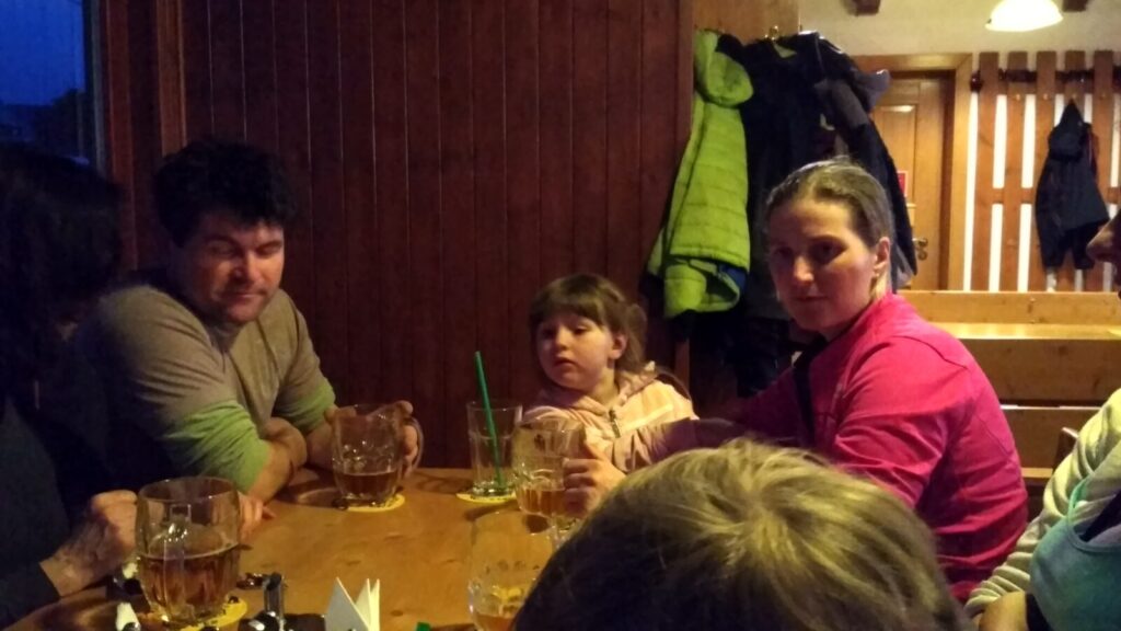 Po cestě domů následuje obligátní zastávka u silnice na koupi sýrových pochoutek. A v devátenáct hodin už sedíme za hranicemi v Prostřední Bečvě ve Valašském Šenku Zavadilka na výborné večeři.