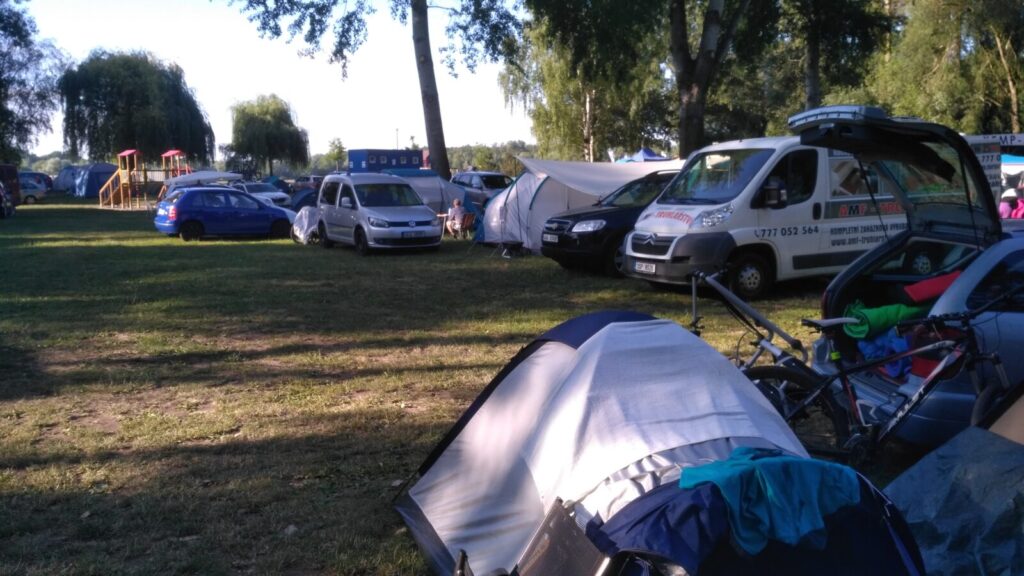Pouze s Filipem jedeme za našimi známými do Poděbrad do campu. Bereme starý stan, který jsem si kupoval asi v patnácti, nakládáme kola a jedeme.